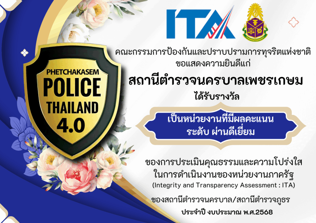คณะกรรมการป้องกันและปราบปรามการทุจริตแห่งชาติ ขอแสดงความยินดีแก่ สถานีตำรวจนครบาลเพชรเกษม ได้รับรางวัล เป็นหน่วยงานที่มีผลคะแนน ระดับ ผ่านดีเยี่ยม ของการประเมินคุณธรรมและความโปร่งใส ในการดำเนินงานของหน่วยงานภาครัฐ (Integrity and Transparency Assessment : ITA) ประจำปี งบประมาณ พ.ศ.2568 อ่านเพิ่มเติม